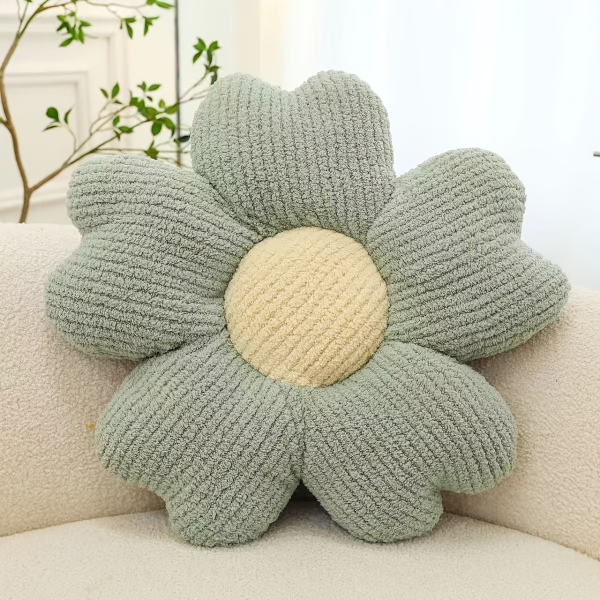 16 Inch Round Flower-Shaped Throw Pillow with Insert - Soft Velvet-Like Texture Cushion, 5 Colors (, Red, Green, Purple) | Decorative Accent for Sofa, Bed, Car | Machine Washable & Zipper Closure | Ideal Gift for Home Decor | No Batteries\u002FElectricit